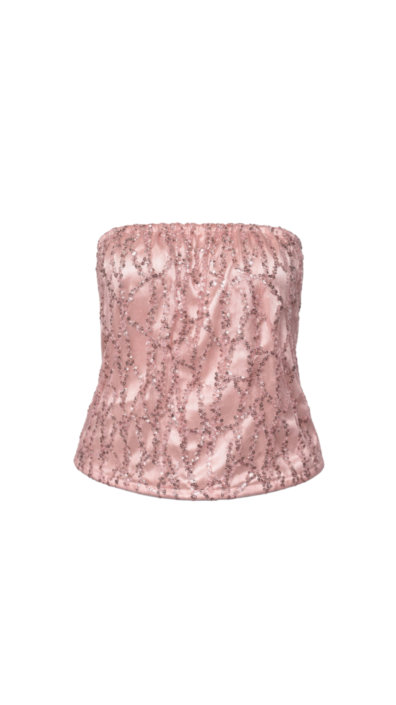 Top confeccionado con tela bordada de alta calidad, seleccionada por sus delicados patrones y aplicaciones brillantes que aportan textura y un toque sutil de luminosidad a la prenda. Su diseño incorpora un elástico en la parte superior que crea un efecto fruncido, permitiendo que el top se ajuste cómodamente al cuerpo mientras mantiene una silueta femenina y ligera.
